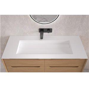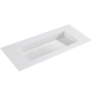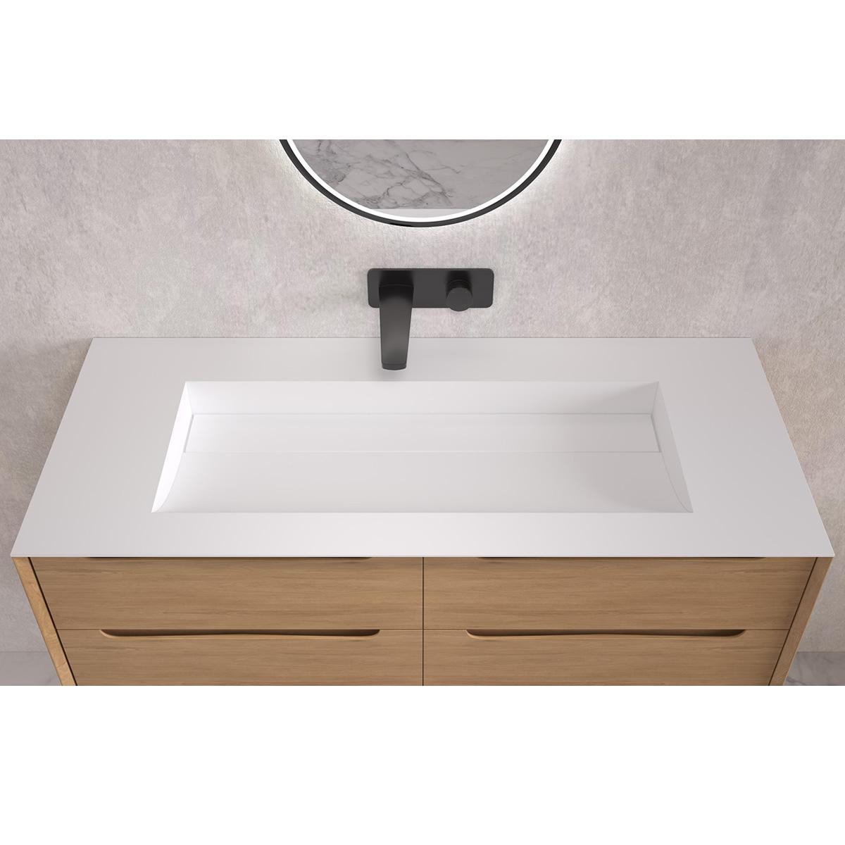 Transform your bathroom into a modern luxury space with a Fino Stone basin. They are perfect for a high end designer bathroom or a five star hotel. All the Fino basins are hand carved from a solid single piece of stone material with a contemporary real matt white finish that gives the amazing natural feel and look. Match perfectly with one of the Fino Stone matt baths to create the ultimate luxury experience. The Barcelona is a long double length drop in basin with fashionable hidden drain and sloped sink. It is 1200mm by 520mm with a height of 100mm and weighs 26kg.