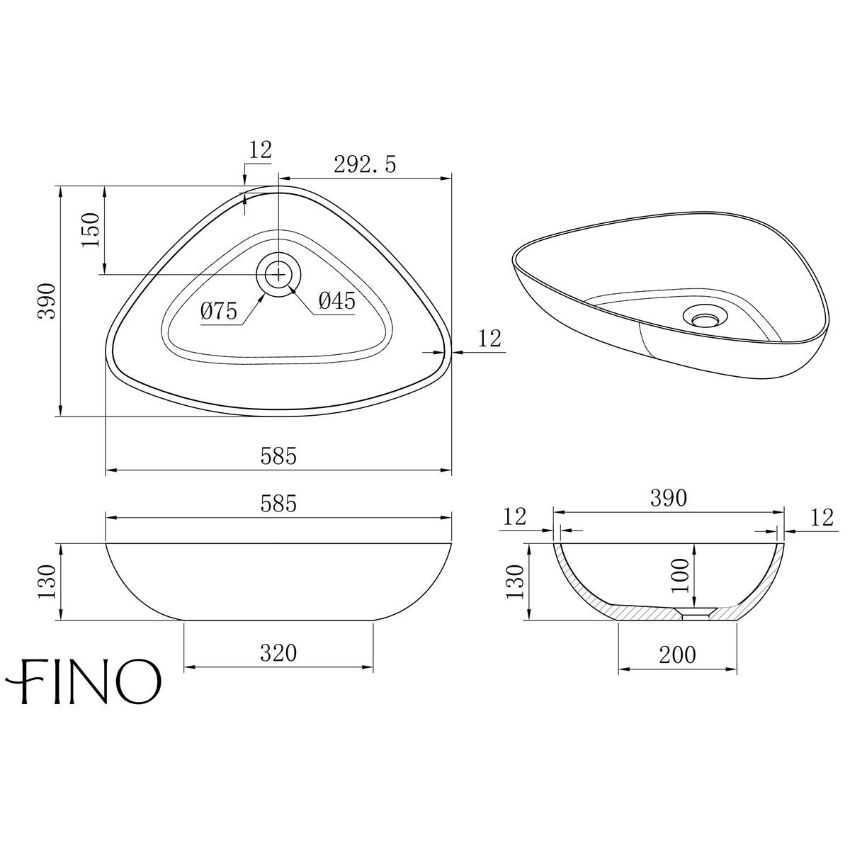 Transform your bathroom into a modern luxury space with a Fino Stone basin. They are perfect for a high end designer bathroom or a five star hotel. All the Fino basins are hand carved from a solid single piece of stone material with a contemporary real matt white finish that gives the amazing natural feel and look. Match perfectly with one of the Fino Stone matt baths to create the ultimate luxury experience. The Capileira is a countertop basin with a very unique three sided soft triangle design. It is 585mm by 390mm with a height of 130mm and weighs 6kg.
