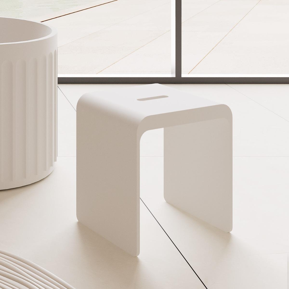 The integrated top handle ensures easy mobility, while its compact structure makes it an ideal solution for both functional seating and as a stylish accent piece. Perfect for contemporary, spa-like bathrooms, this seat is resistant to moisture and scratches, ensuring long-lasting beauty and utility.
