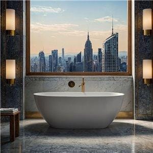 It is made from a solid single piece of stone material. Not to be confused with acrylic baths, this is a highest quality handmade luxury solid surface stone bath with a real matt white finish that can only be truly achieved with a solid surface material.