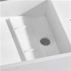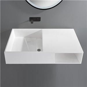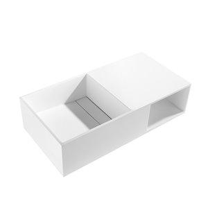 Transform your bathroom into a modern luxury space with a Fino Stone basin. They are perfect for a high end designer bathroom or a five star hotel. All the Fino basins are hand carved from a solid single piece of stone material with a contemporary real matt white finish that gives the amazing natural feel and look. Match perfectly with one of the Fino Stone matt baths to create the ultimate luxury experience. The Madrid is a single piece of material wall hung modern vanity unit with a flat storage area and towel shelf underneath. It is 800mm by 400mm with a height of 200mm and weighs 25kg.