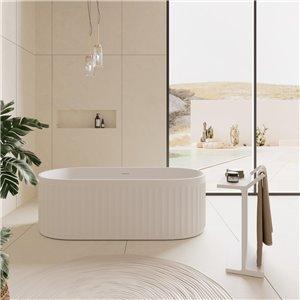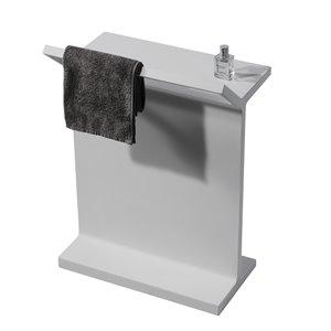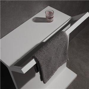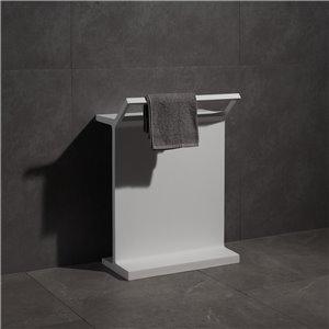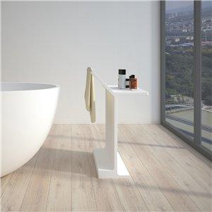 This chic freestanding bath shelf with towel rail is carved from a solid single piece of stone material with a contemporary real matt white finish that gives the amazing natural feel and look. They match perfectly with a freestanding stone bath for an ultra modern bathroom. It measure 500mm by 314mm with a height of 693mm and weighs 24kg.
