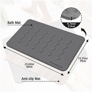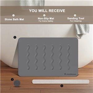 Experience the perfect blend of modern elegance and practical functionality with the Jeedeson Stone Bath Mat. Size is 39x60cm/16″ x 24″, Made from 100% natural diatomaceous earth, this mat offers a sustainable and long-lasting alternative to conventional bathroom mats. Its highly absorbent surface quickly draws moisture away, ensuring a dry and hygienic bathroom environment while reducing odours. The non-slip textured surface—paired with the included anti-slip pad—provides extra safety and stability, so you can step out of the shower with confidence. Cleaning is simple: just rinse or wipe the mat regularly. For deeper stains, gently use the included sandpaper. Designed with curved edges for added comfort and safety, this mat combines smart design with everyday convenience. Ideal for bathrooms, kitchens, entranceways, and more, the Jeedeson Stone Bath Mat is the stylish and practical upgrade your home needs.