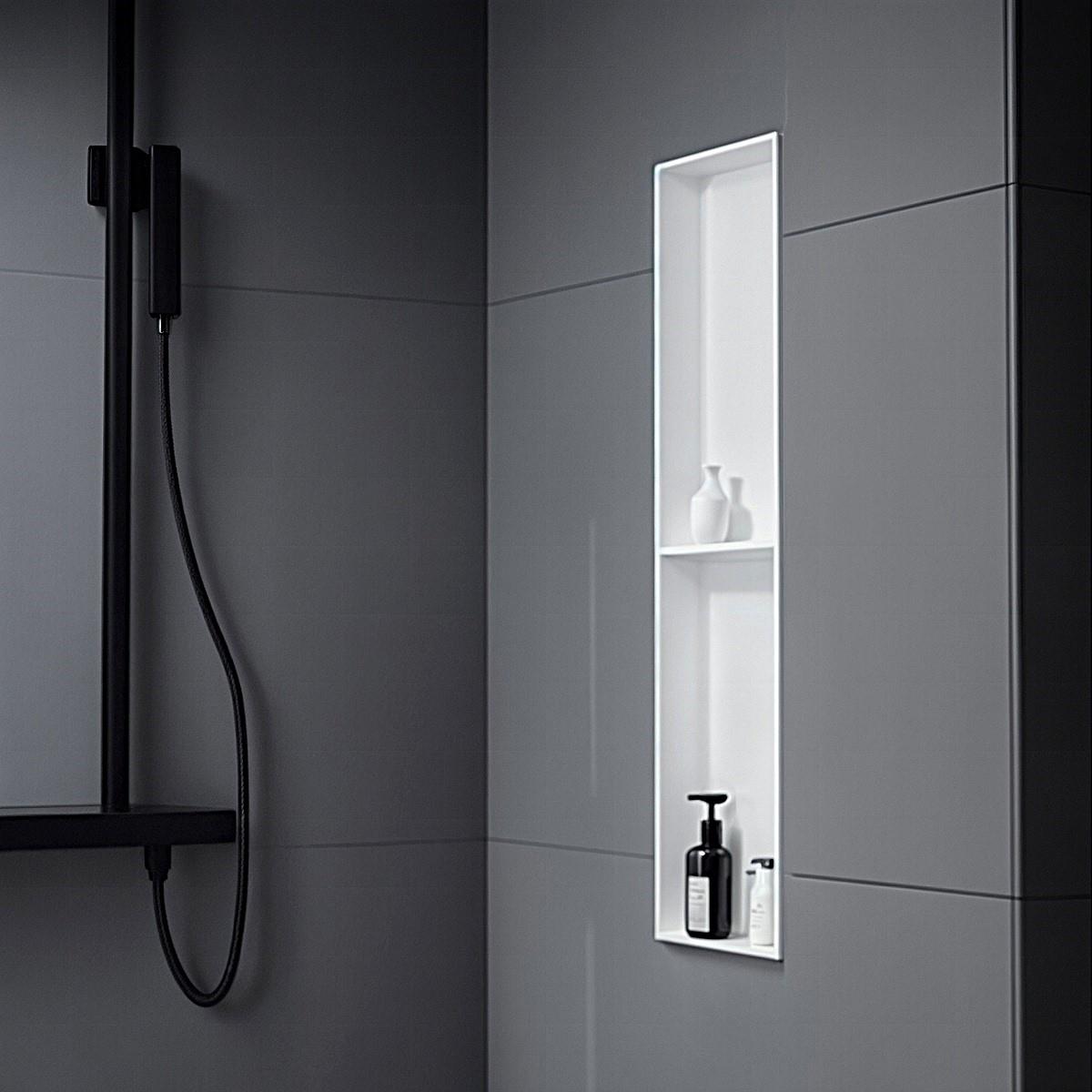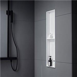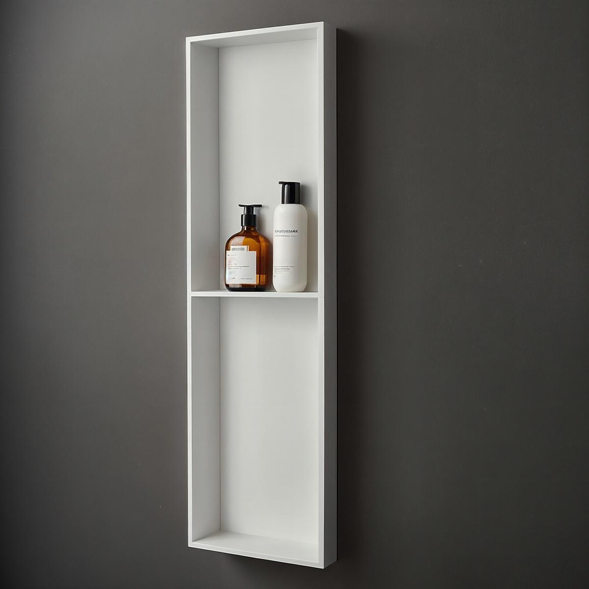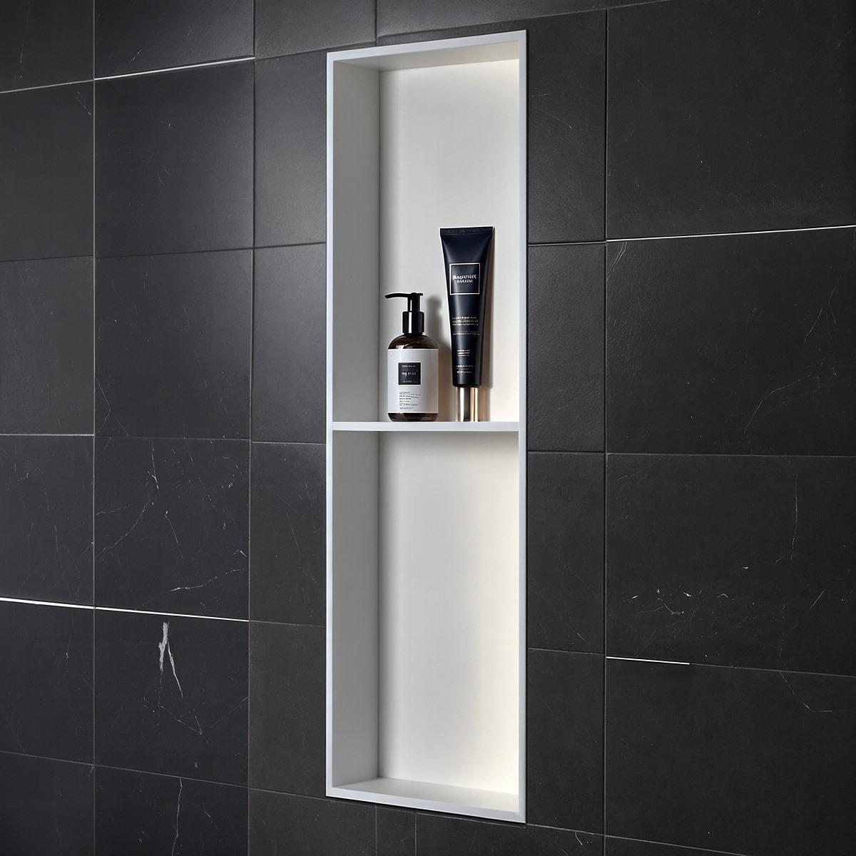 Crafted with meticulous precision, the Fino Stone Wall Niche embodies the pinnacle of luxury and durability. Made from premium solid surface stone in a flawless matte white finish, this 30cm x 90cm recessed waterproof shelf offers a seamless, built-in aesthetic that exudes contemporary refinement. Its spacious design provides an elegant showcase for your most exclusive bath essentials, while its non-porous, moisture-resistant composition ensures lasting beauty and resilience. A statement of superior craftsmanship, this niche blends timeless sophistication with modern functionality, transforming your bathroom into a sanctuary of effortless elegance.