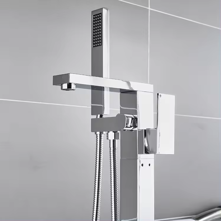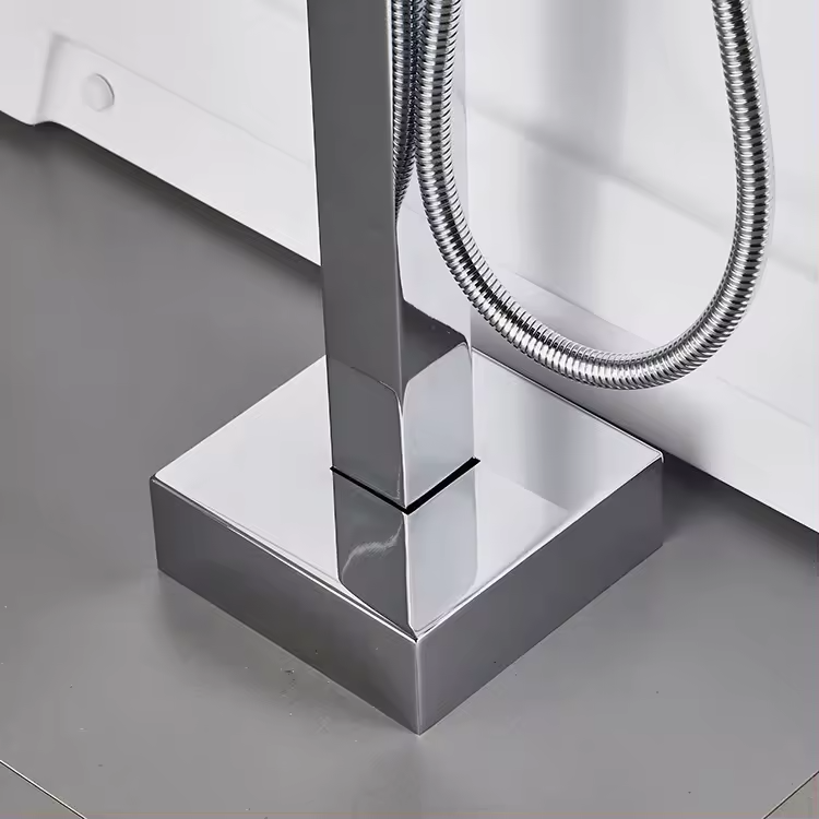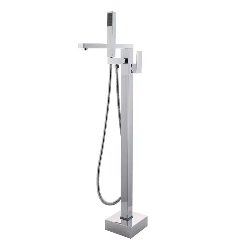 Finish your bathroom to create a modern luxury space with Fino Stone bathroom accessories. They are perfect for a high end designer bathrooms or five star hotels. This is a contemporary freestanding bath tap with shower in chrome silver that features a classic straight spout.