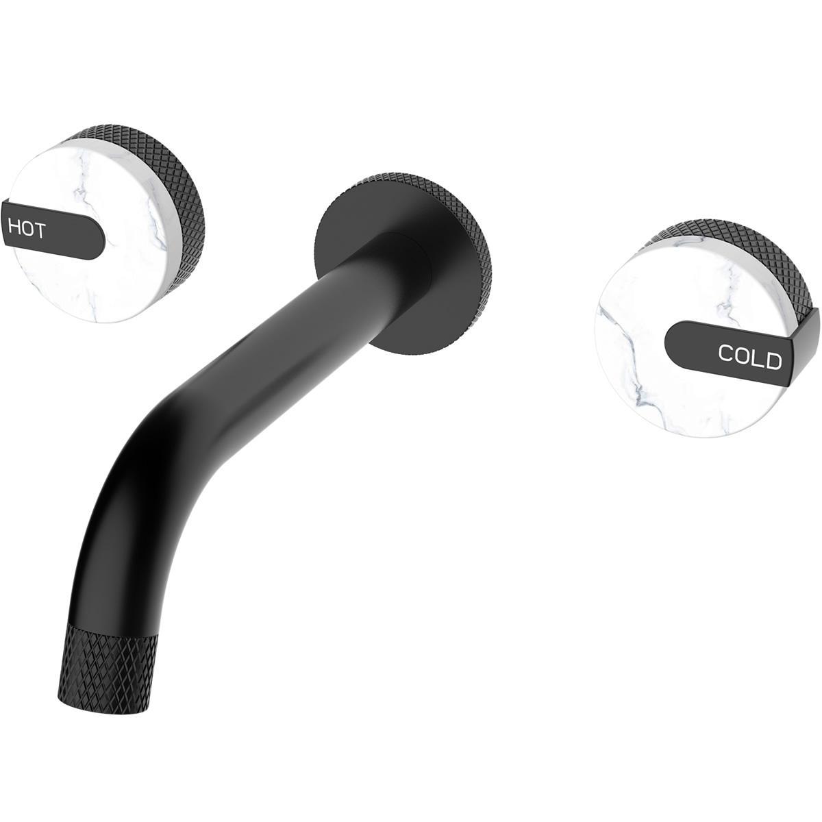 Finish your bathroom to create a modern luxury space with Fino Stone bathroom accessories. They are perfect for a high end designer bathrooms or five star hotels. This beautiful wall mounted tap in matt black features unique twin white marble handles and is perfect for a marble or white stone bathroom.