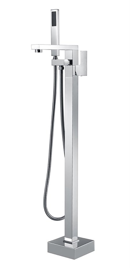 Finish your bathroom to create a modern luxury space with Fino Stone bathroom accessories. They are perfect for a high end designer bathrooms or five star hotels. This is a contemporary freestanding bath tap with shower in chrome silver that features a waterfall spout.